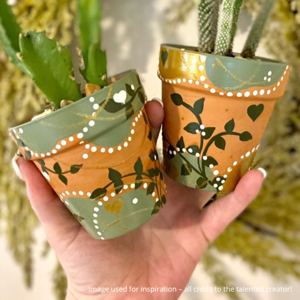 Your ticket includes all materials, paints, and supplies to create a painted 17cm terracotta flower pot to take home. The tutorial will be to make something like what is in photos but you are welcome to create whatever you want.